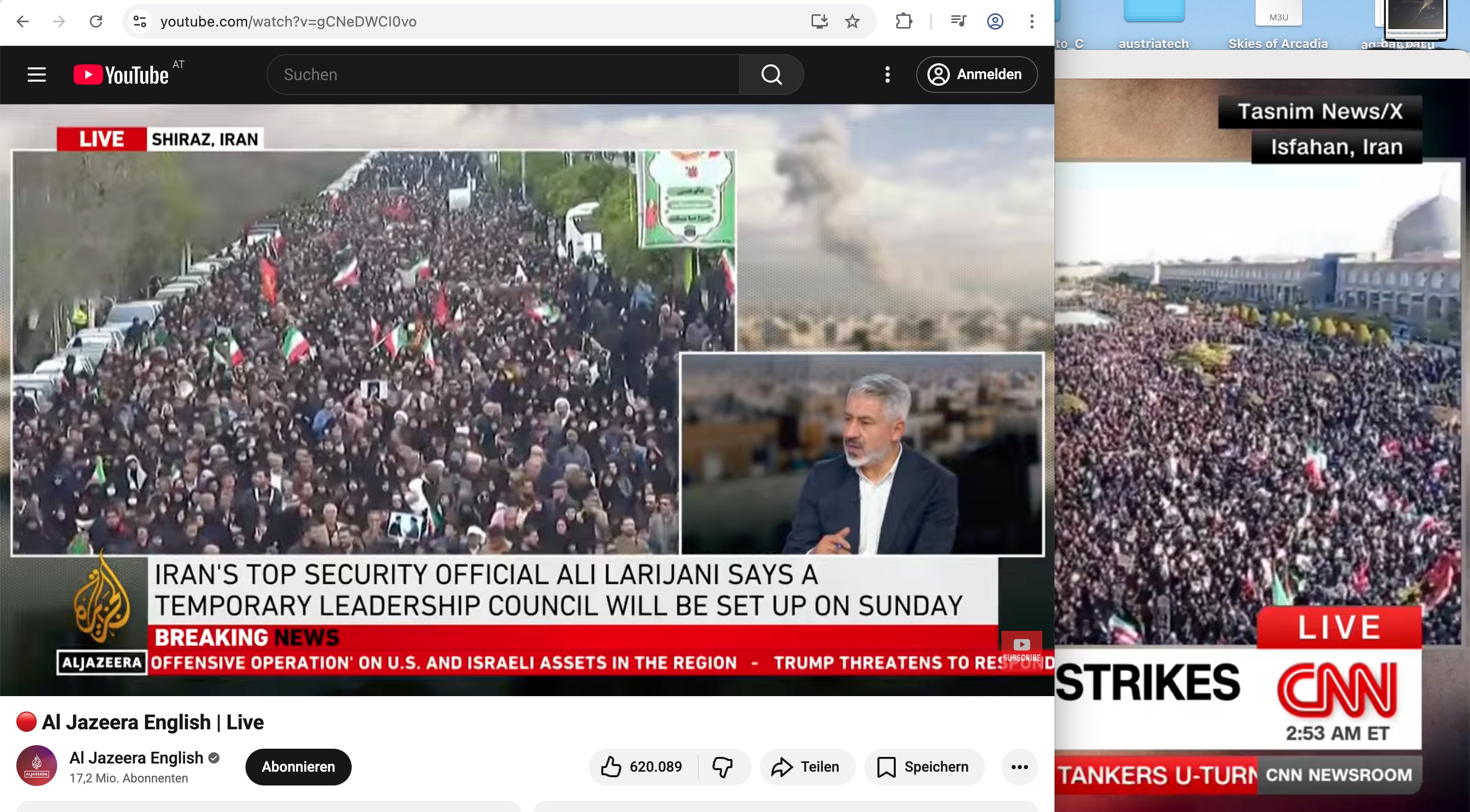 Ich mein, es schal­tet eh jeder Al Jaze­e­ra ein, aber mir war der Qua­li­täts­un­ter­schied der bei­den Sen­de­kon­zep­te noch nie so klar wie heute.